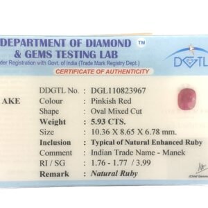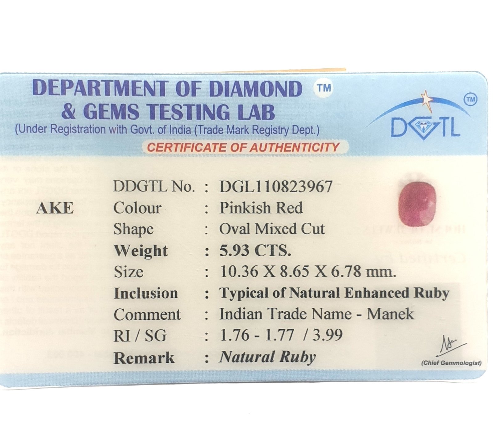 Natural Glass Filled Ruby (Manak) from Bangkok, certified by DGLA. Contact us for further Certification by GIA / GII / IGI and Others.