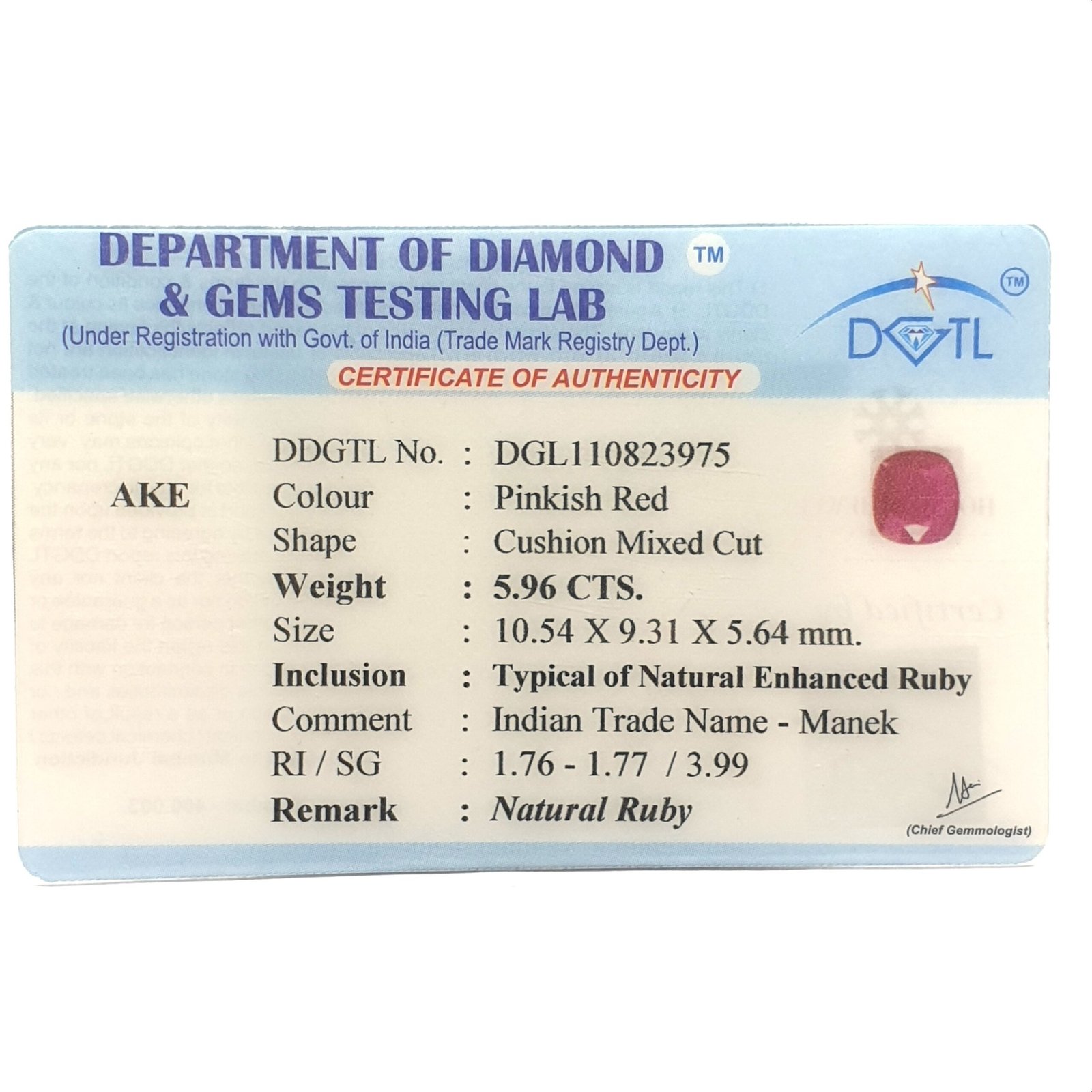 Natural Glass Filled Ruby (Manak) from Bangkok, certified by DGLA. Contact us for further Certification by GIA / GII / IGI and Others.