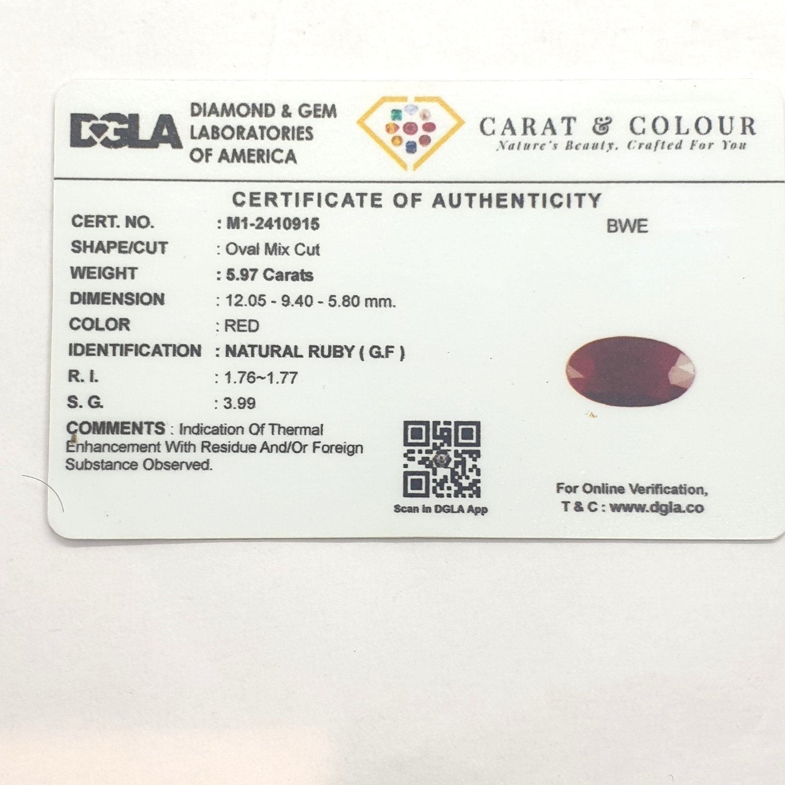 Natural Glass Filled Ruby (Manak) from Bangkok, certified by DGLA. Contact us for further Certification by GIA / GII / IGI and Others.