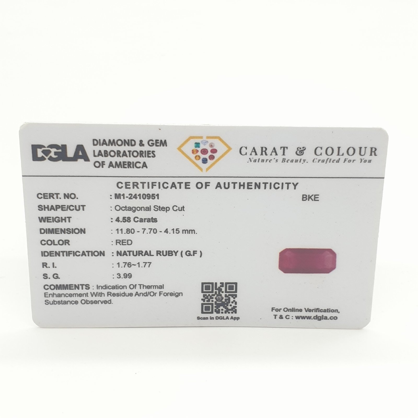 Natural Heat Treated Ruby (Manak) from Madagascar, certified by DGLA. Contact us for further Certification by GIA / GII / IGI and Others.