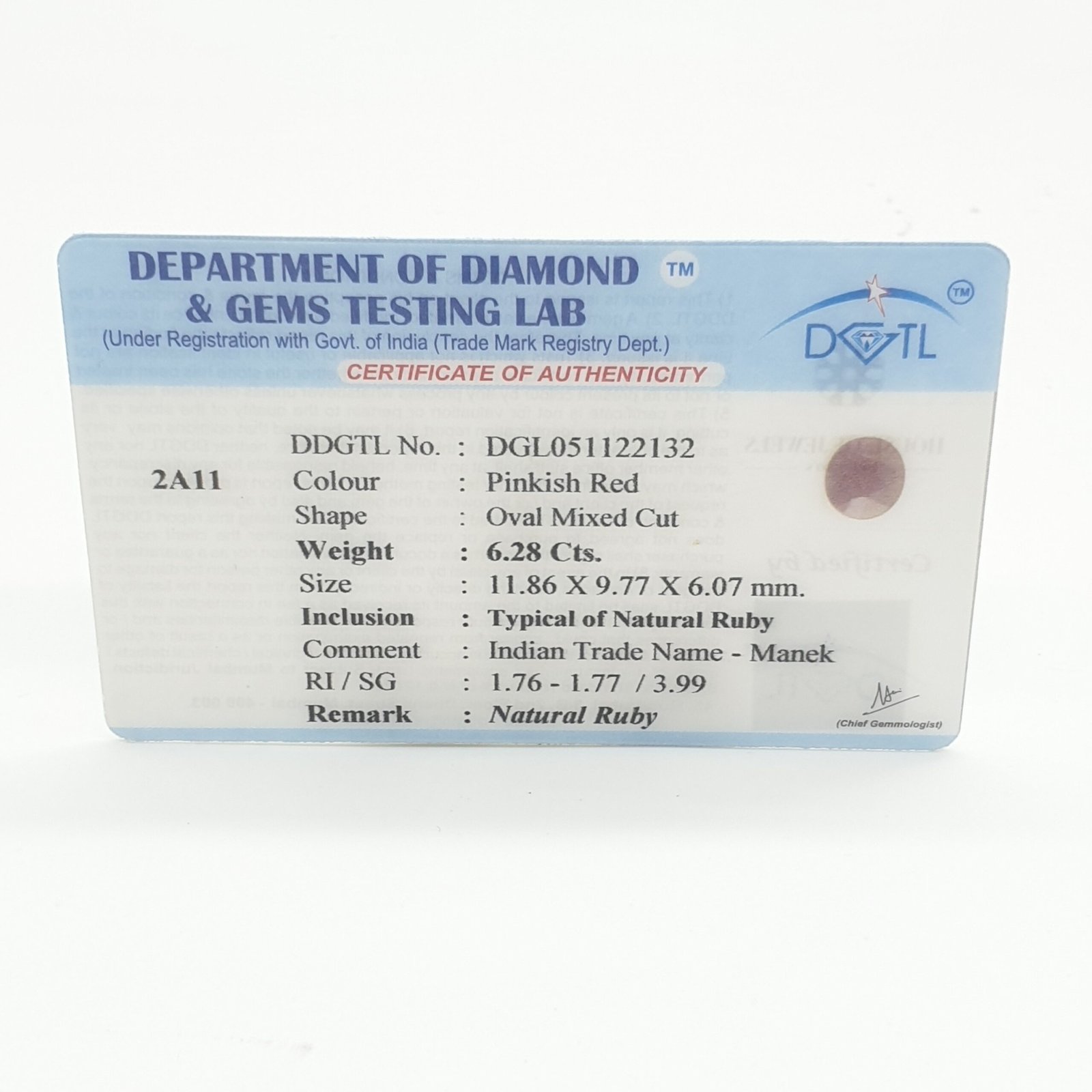 Natural Heat Treated Ruby (Manak) from Africa, certified by DGLA. Contact us for further Certification by GIA / GII / IGI and Others.
