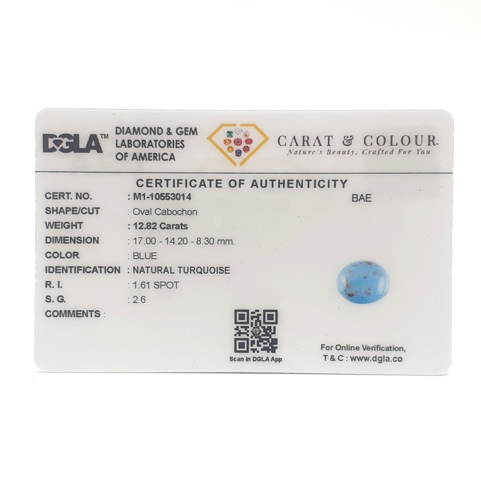 Natural Untreated Turquoise (Firoza) from Iran, certified by DGLA. Contact us for further Certification by GIA / GII / IGI and Others.