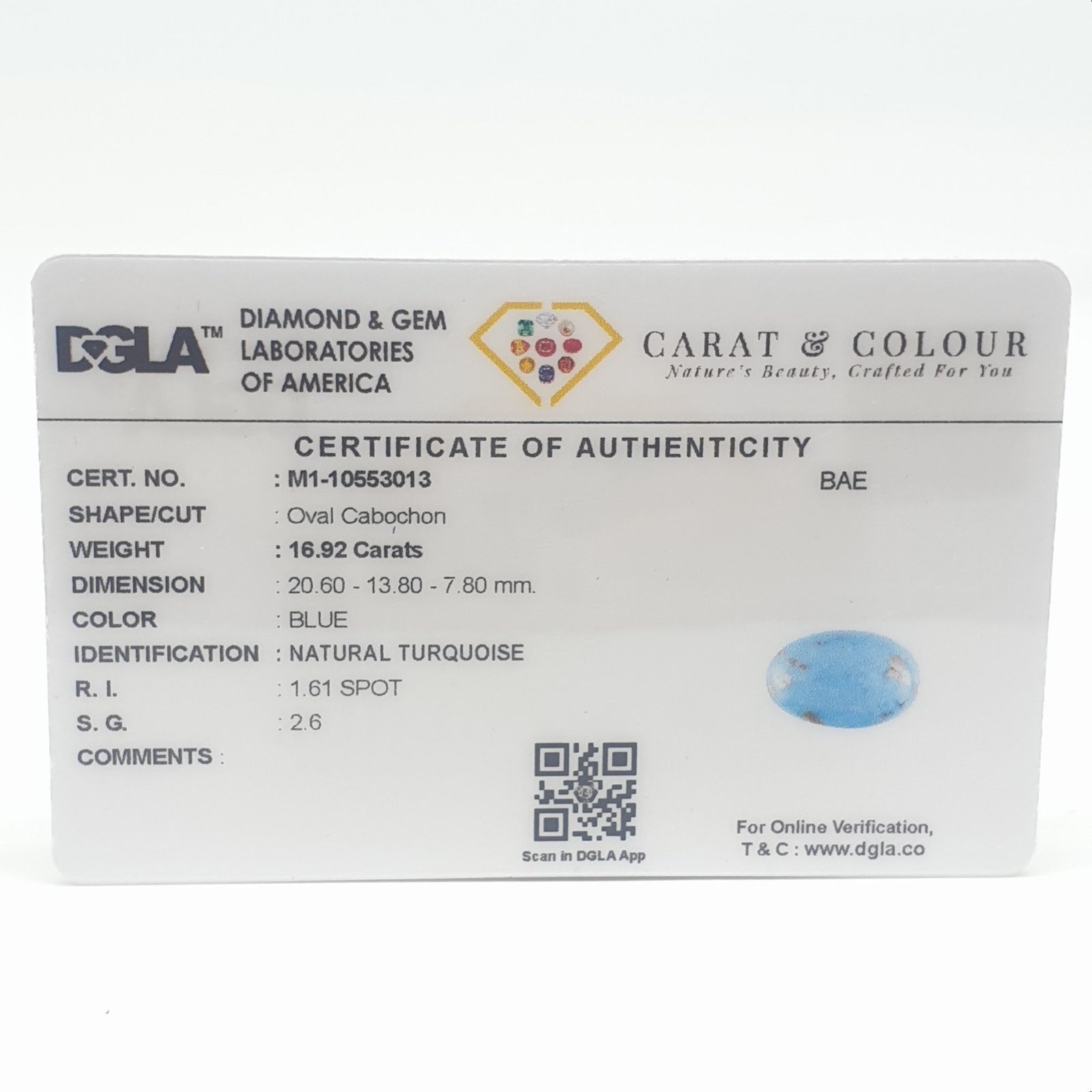 Natural Untreated Turquoise (Firoza) from Iran, certified by DGLA. Contact us for further Certification by GIA / GII / IGI and Others.