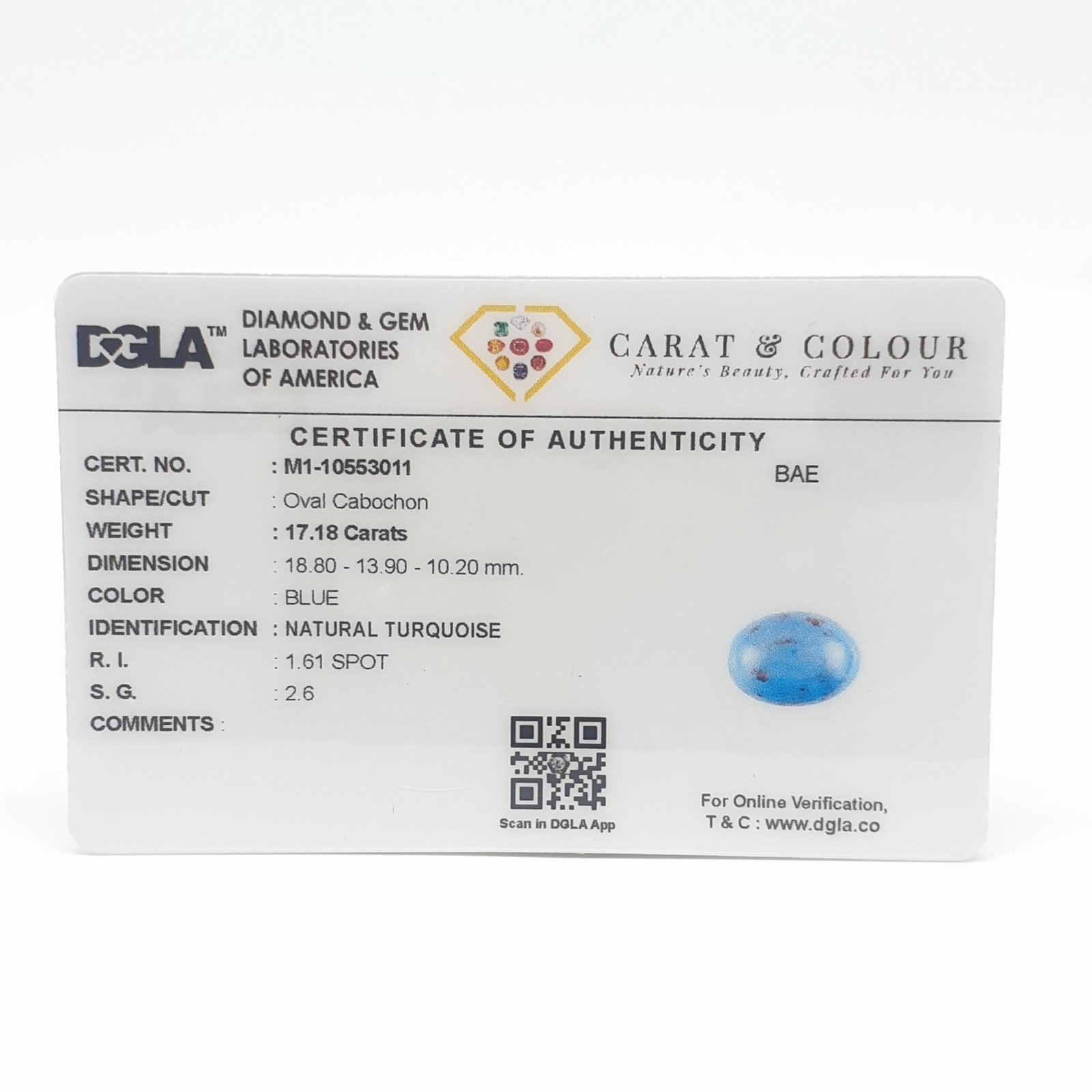 Natural Untreated Turquoise (Firoza) from Iran, certified by DGLA. Contact us for further Certification by GIA / GII / IGI and Others.