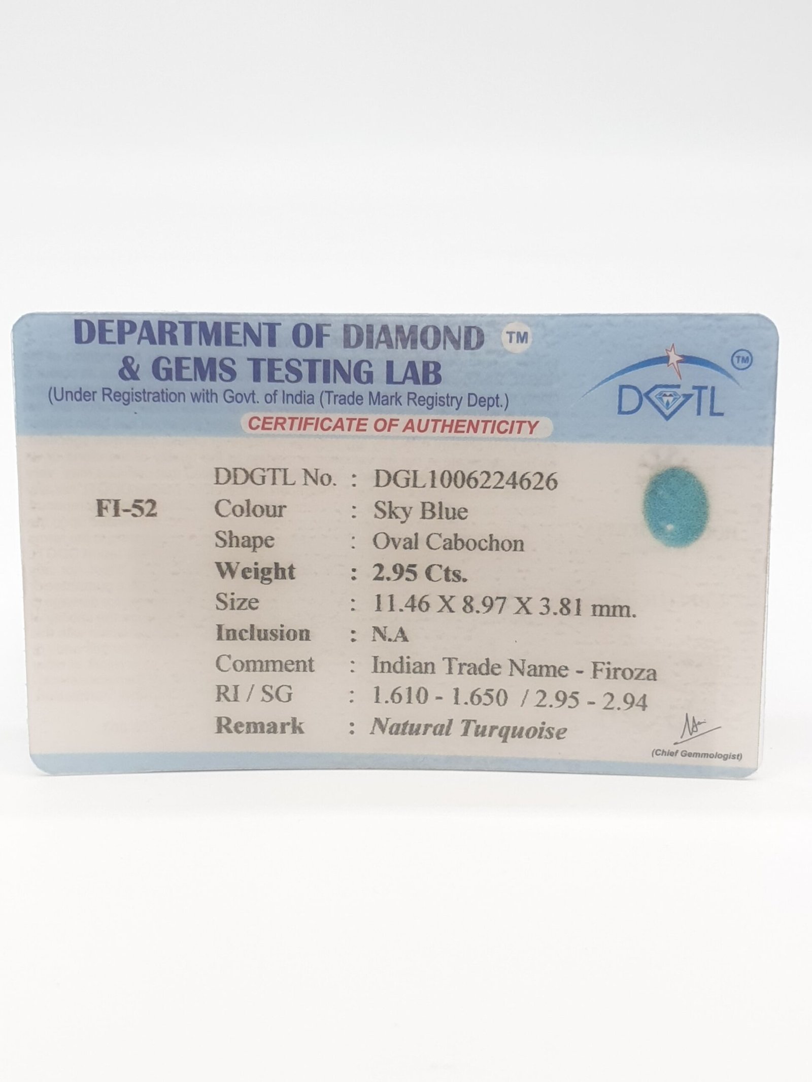 Natural Untreated Turquoise (Firoza) from Iran, certified by DDGTL. Contact us for further Certification by GIA / GII / IGI and Others.