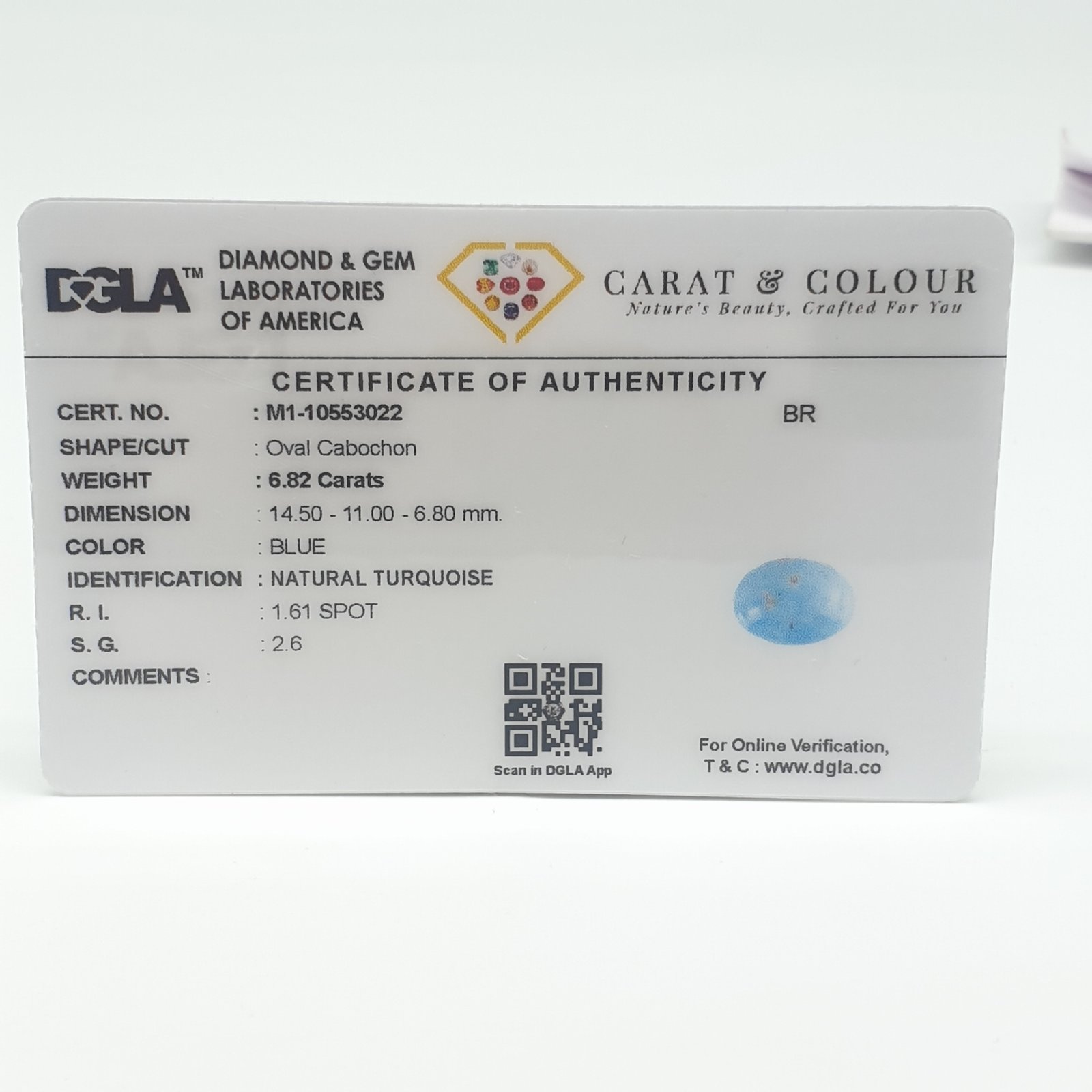 Natural Untreated Turquoise (Firoza) from Iran, certified by DGLA. Contact us for further Certification by GIA / GII / IGI and Others.