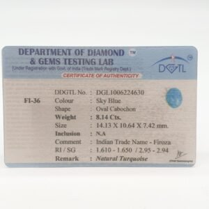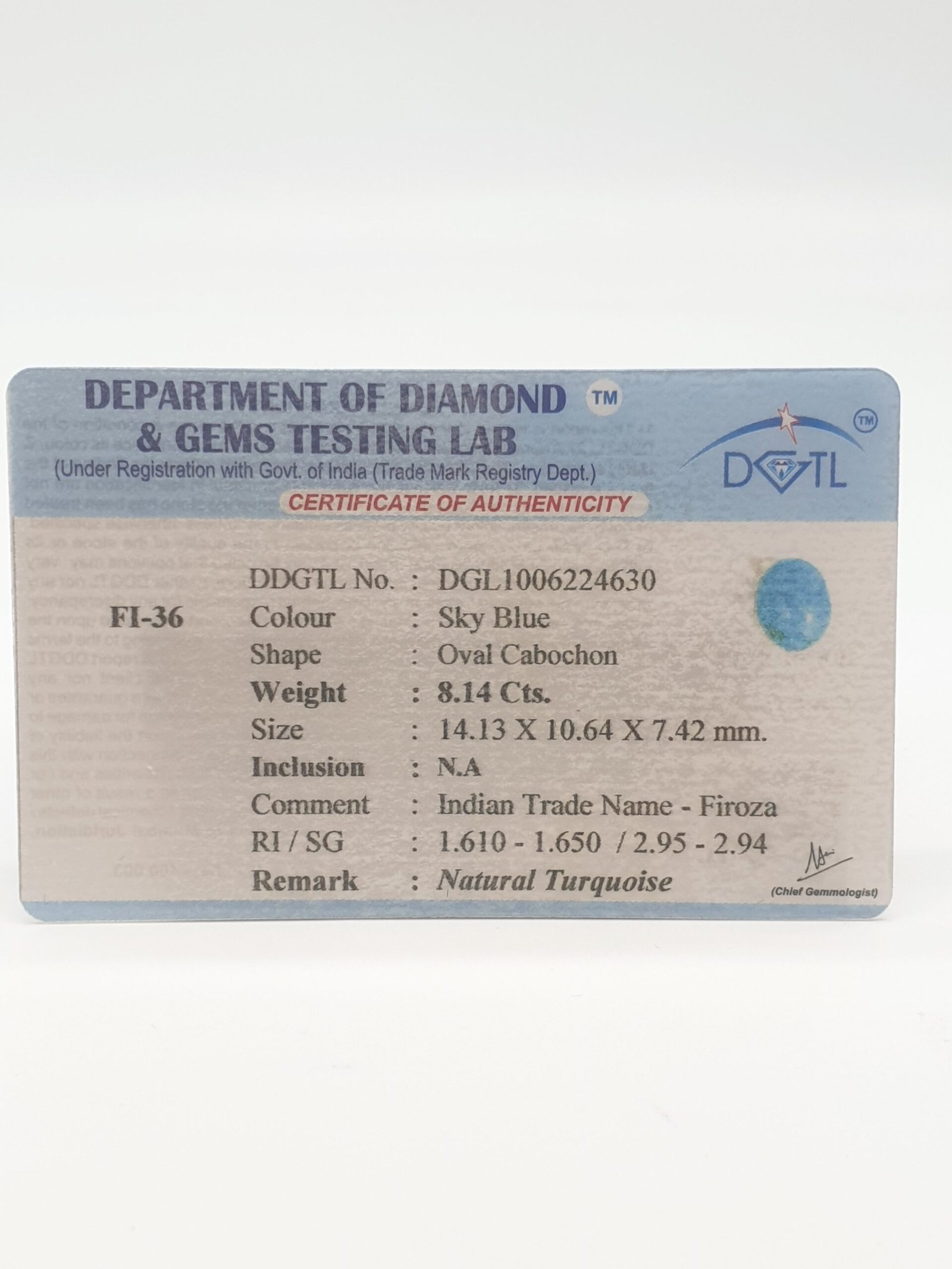 Natural Untreated Turquoise (Firoza) from Iran, certified by DGLA. Contact us for further Certification by GIA / GII / IGI and Others.