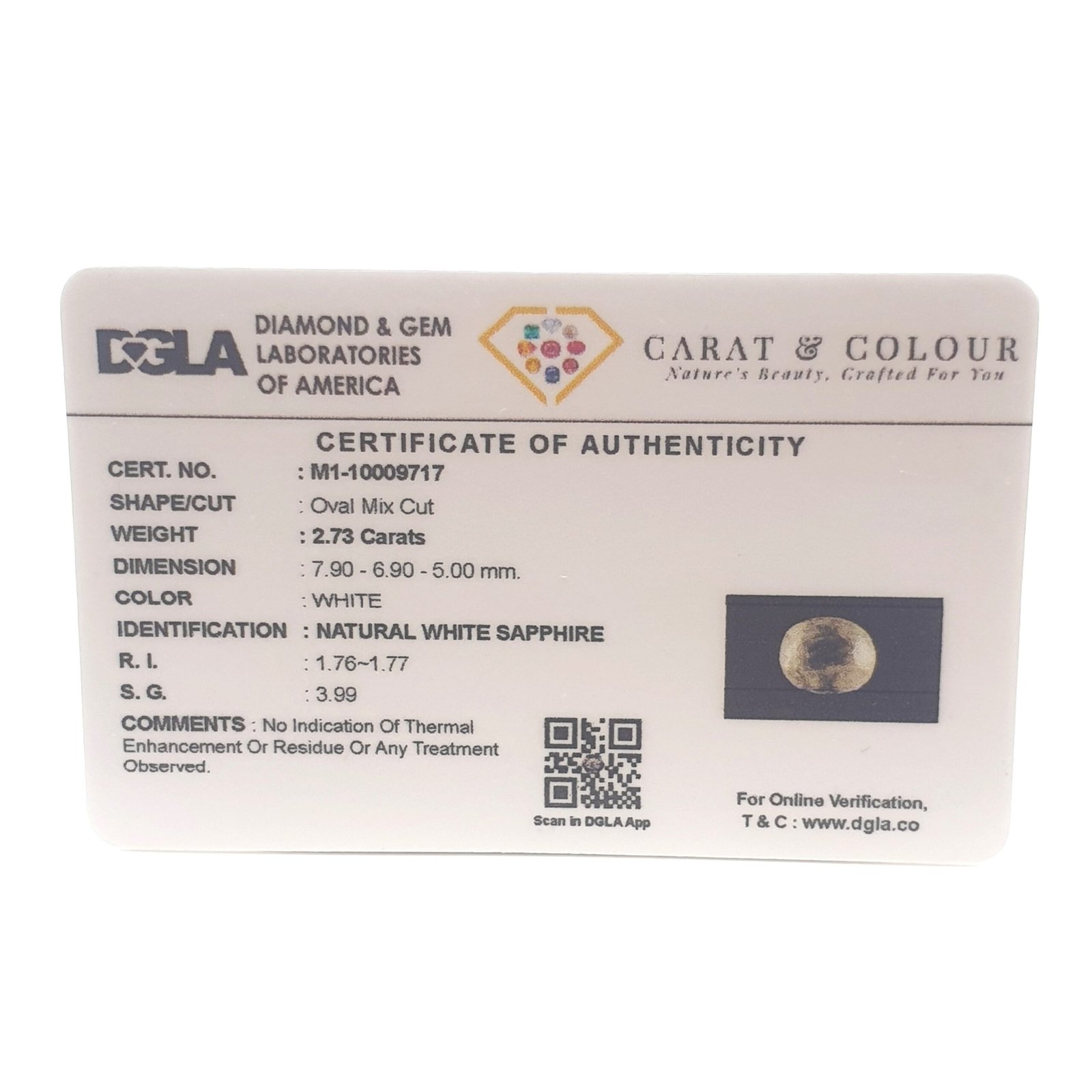 Natural Untreated White Sapphire from Ceylon (Sri Lanka), certified by DGLA. Contact us for further Certification by GIA / GII / IGI and Others.