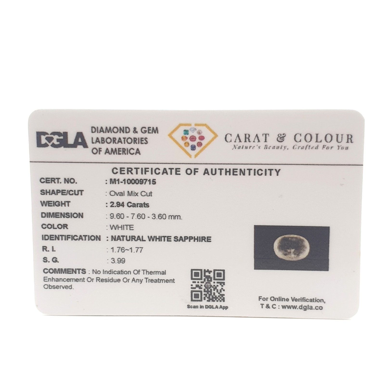 Natural Untreated White Sapphire from Ceylon (Sri Lanka), certified by DGLA. Contact us for further Certification by GIA / GII / IGI and Others.