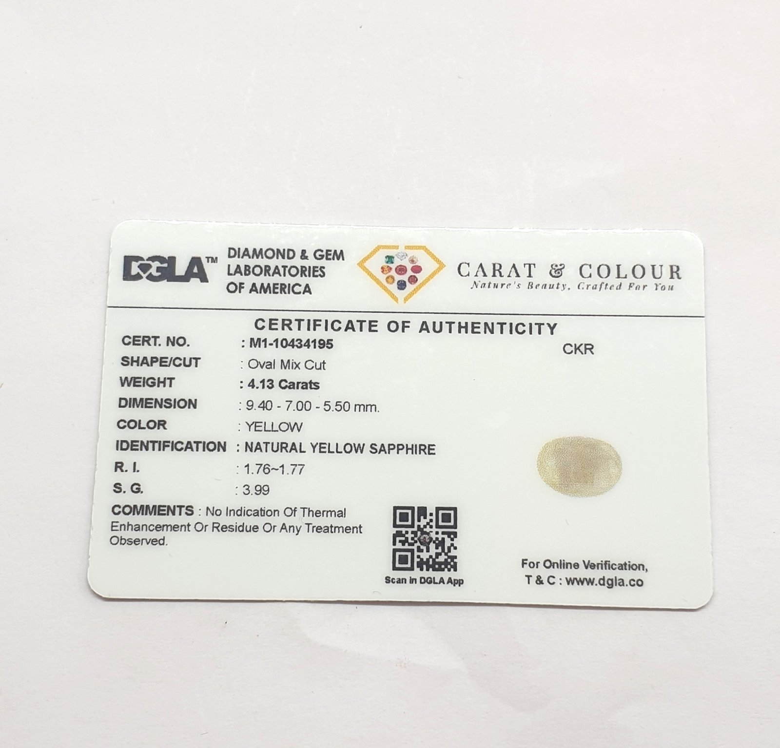 Natural Untreated Yellow Sapphire (Pukhraj) from Sri Lanka, certified by DGLA. Contact us for further Certification by GIA / GII / IGI and Others