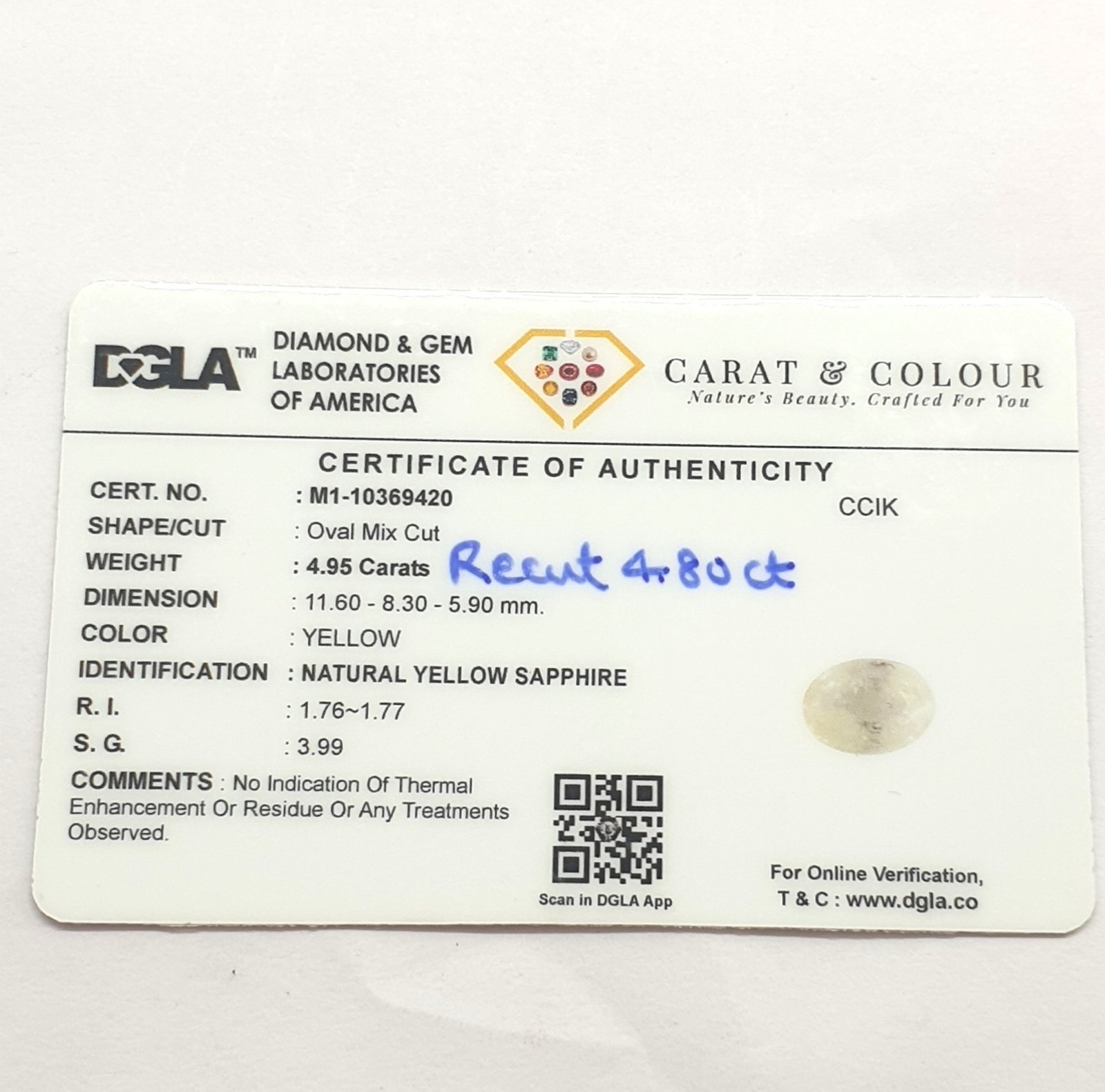 Natural Untreated Yellow Sapphire (Pukhraj) from Sri Lanka, certified by DGLA. Contact us for further Certification by GIA / GII / IGI and Others