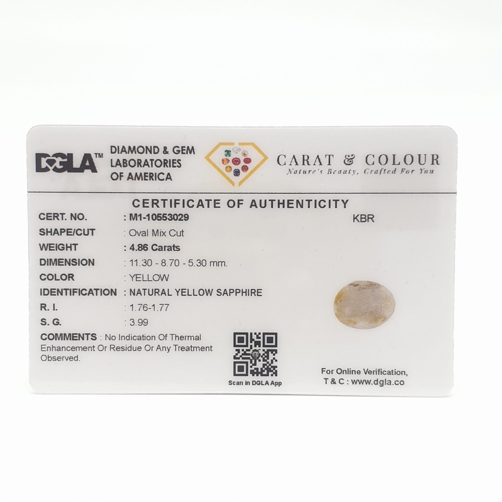 Natural Untreated Yellow Sapphire ( Pukhraj, Pushkaraj ), certified by DGLA. Contact us for further Certification by GIA / GII / IGI and Others.