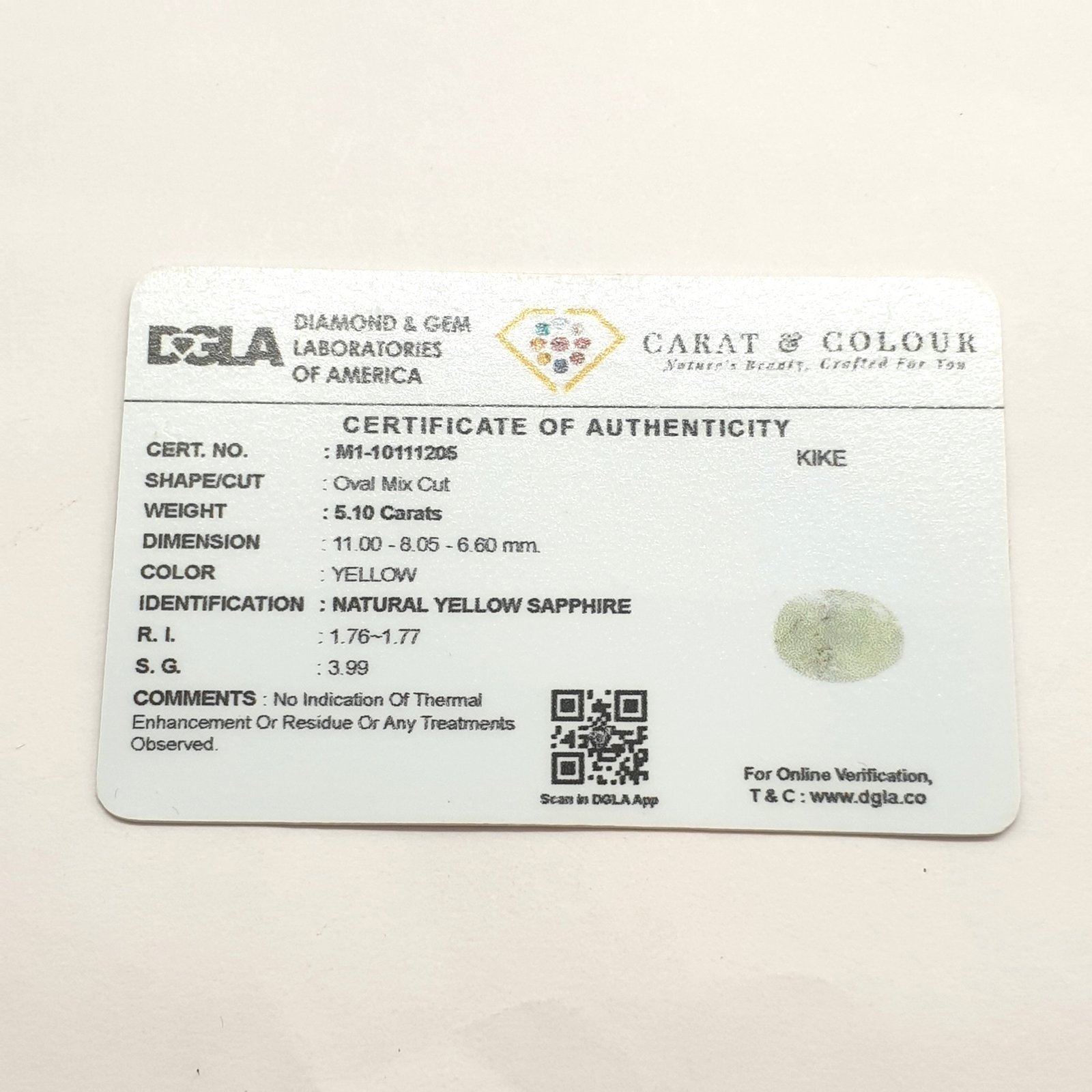 Natural Untreated Yellow Sapphire (Pukhraj) from Sri Lanka, certified by DGLA. Contact us for further Certification by GIA / GII / IGI and Others
