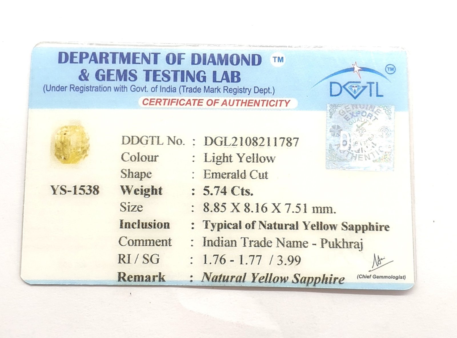 Natural Untreated Yellow Sapphire (Pukhraj) from Sri Lanka, certified by DDGTL. Contact us for further Certification by GIA / GII / IGI / DGLA and Others