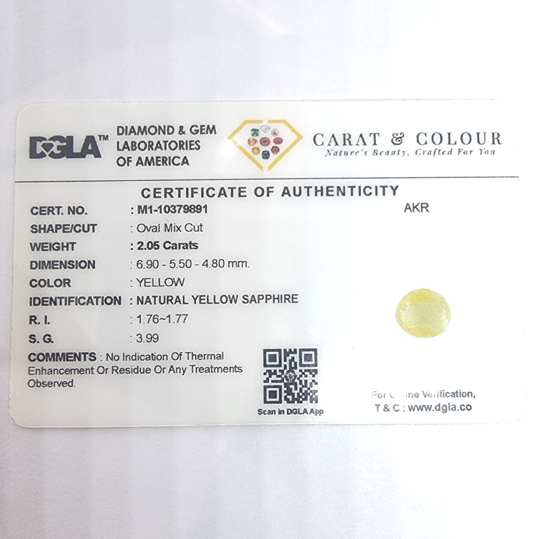 Natural Unheated (Untreated) Yellow Sapphire (Pukhraj) from Ceylon, certified by DGLA. Contact us for further Certification by GIA / GII / IGI and Others
