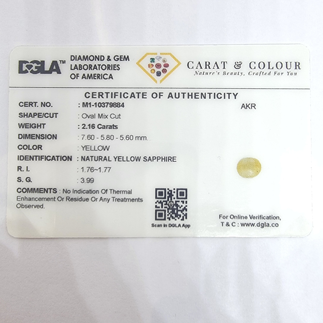 Natural Unheated (Untreated) Yellow Sapphire (Pukhraj) from Ceylon, certified by DGLA. Contact us for further Certification by GIA / GII / IGI and Others