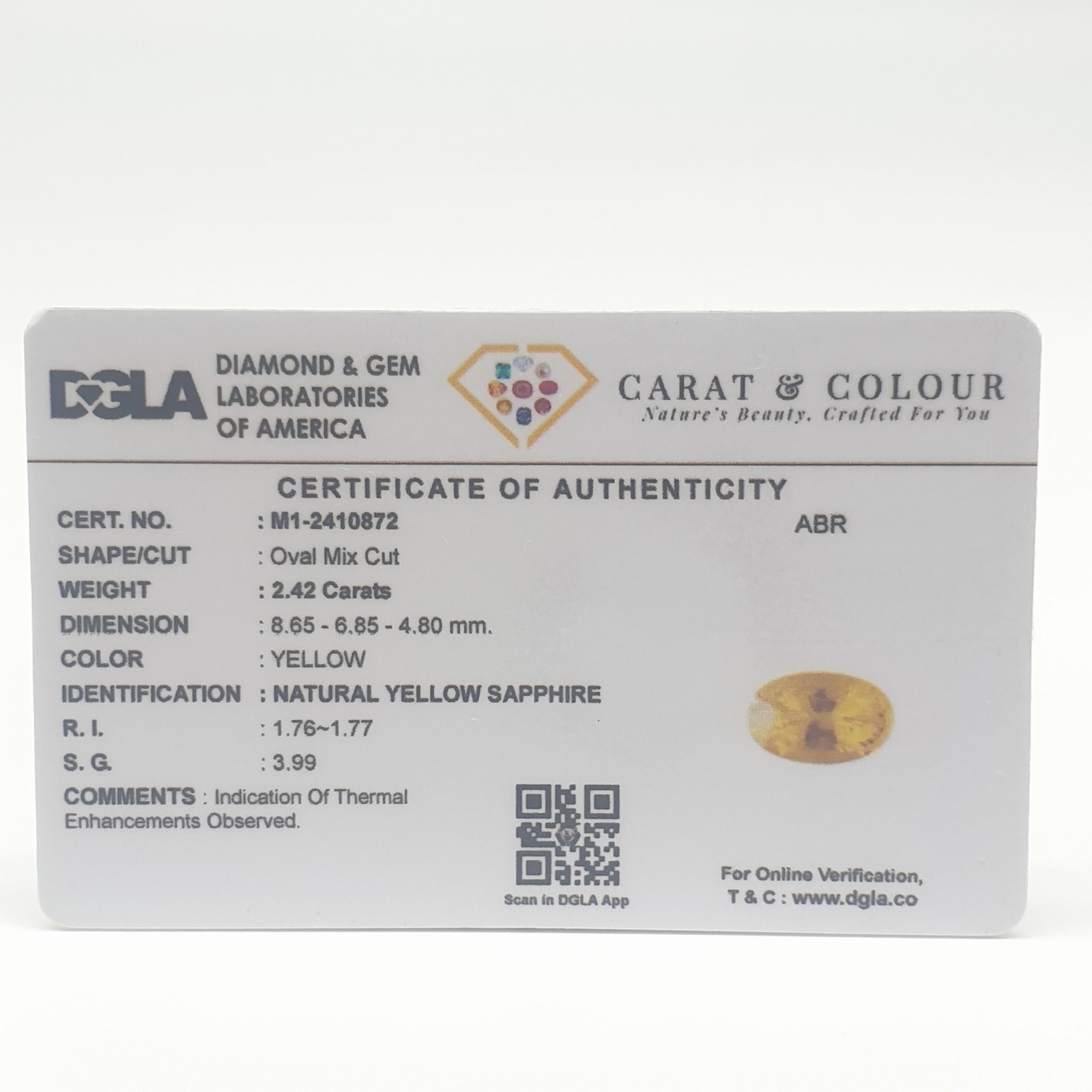 Natural Treated (Heated) Yellow Sapphire (Pukhraj) from Bangkok, certified by DGLA. Contact us for further Certification by GIA / GII / IGI and Others
