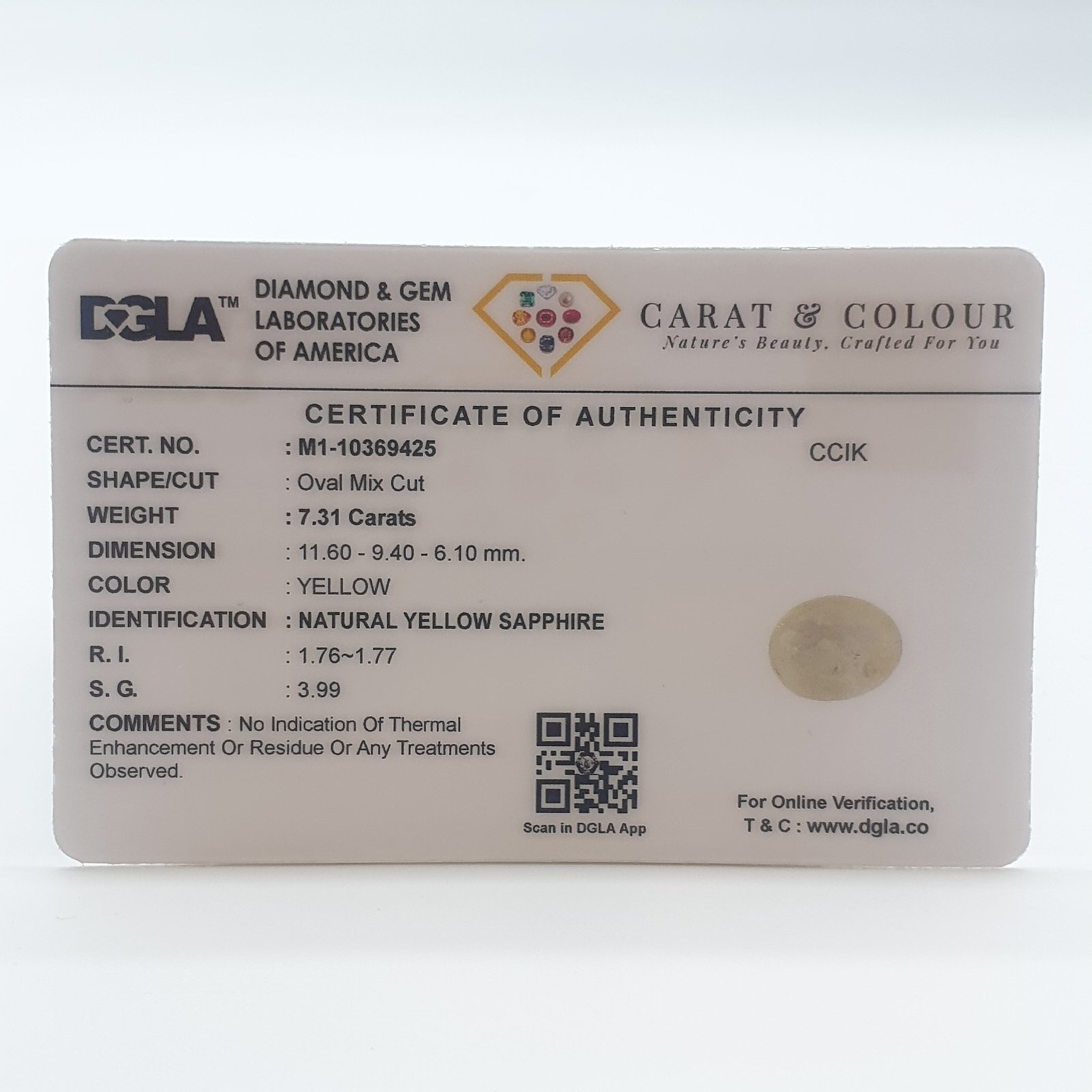 Natural Untreated Yellow Sapphire (Pukhraj) from Sri Lanka (Ceylon), certified by DGLA. Contact us for further Certification by GIA / GII / IGI and Others