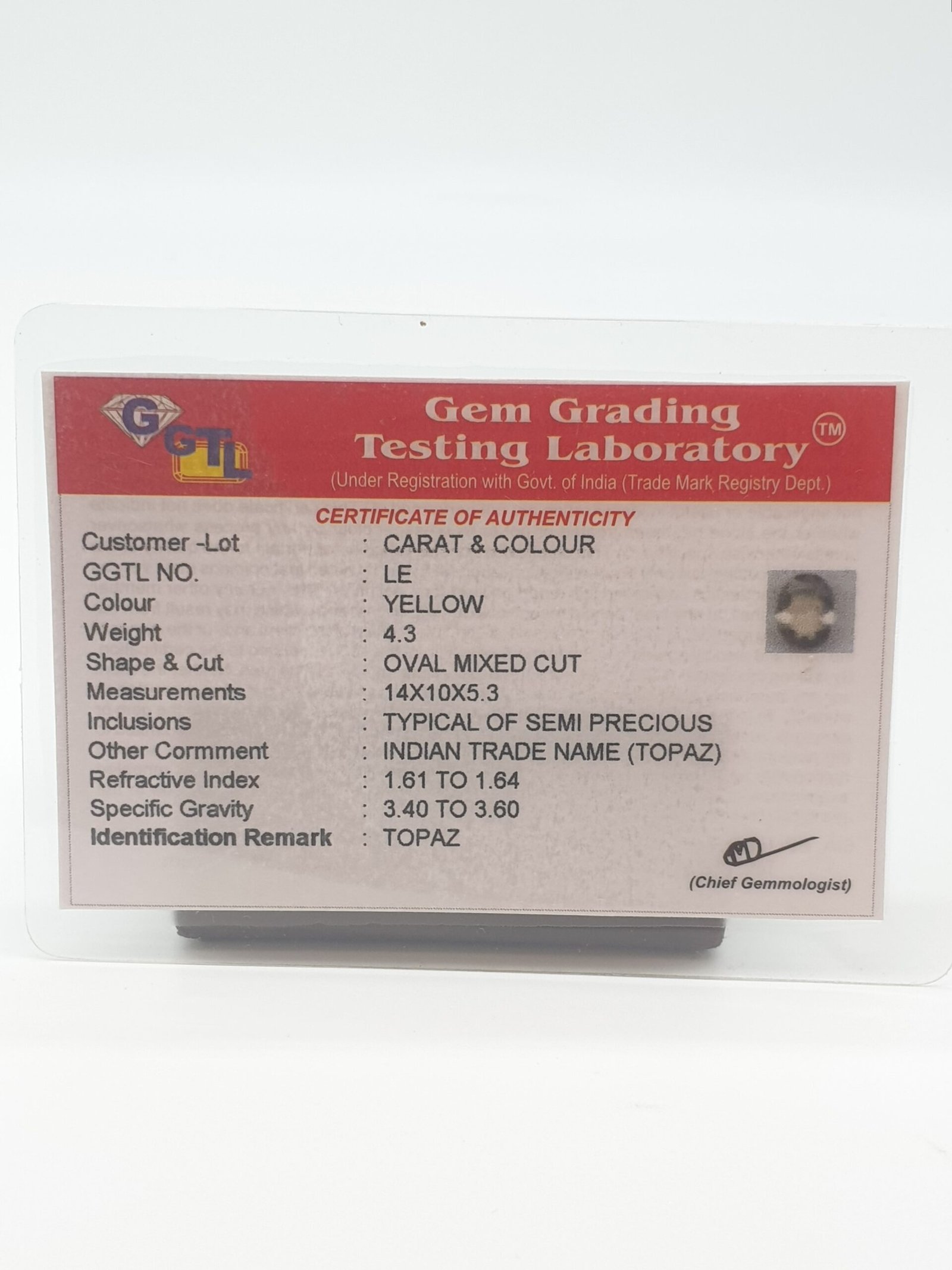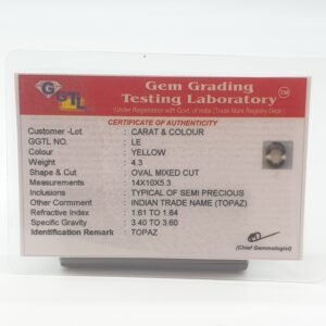 Natural Yellow Topaz, certified by GGTL. Contact us for further Certification by GIA / GII / IGI and Others.