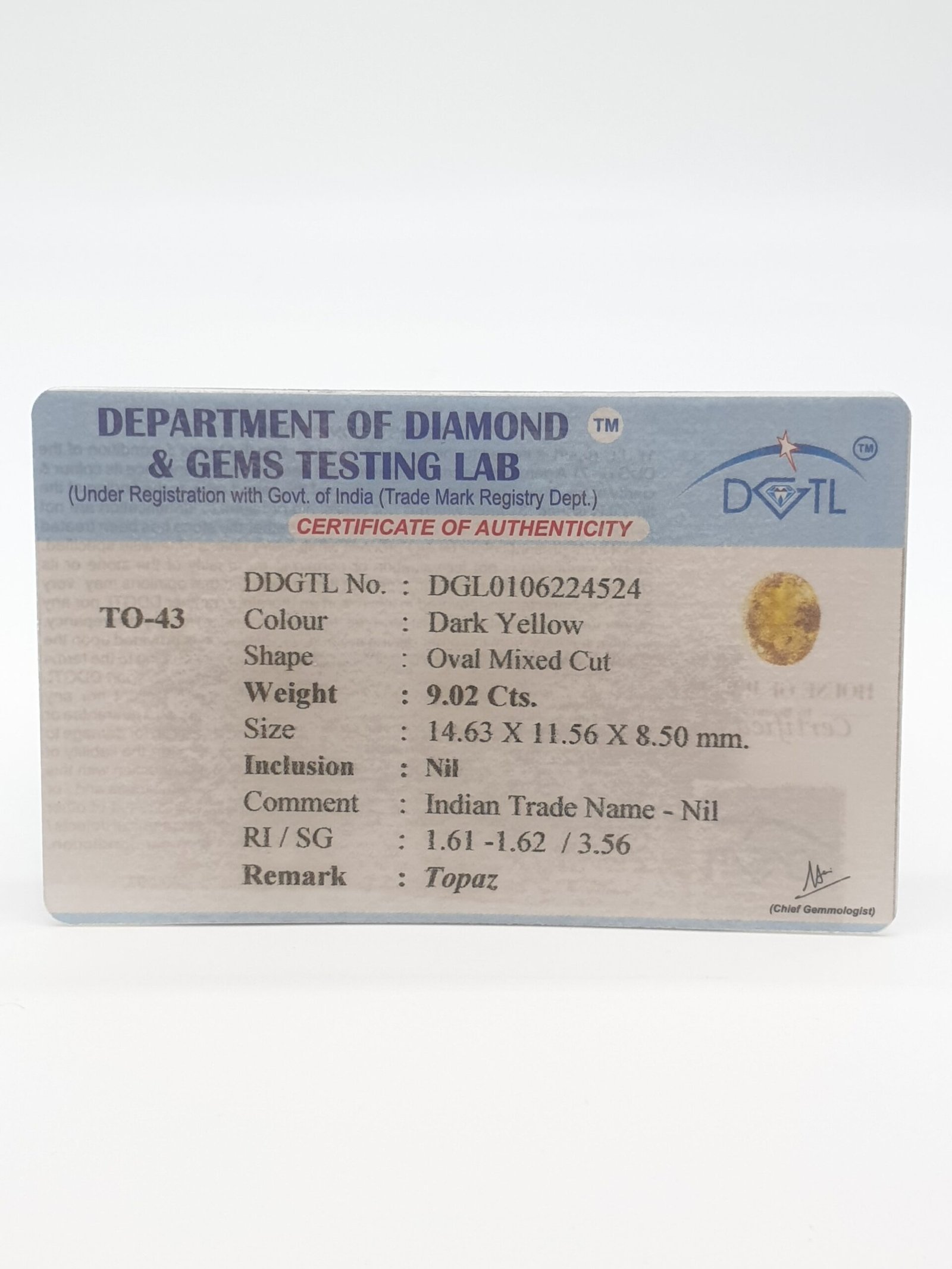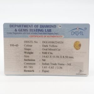 Natural Yellow Topaz, certified by DDGTL. Contact us for further Certification by GIA / GII / IGI and Others.